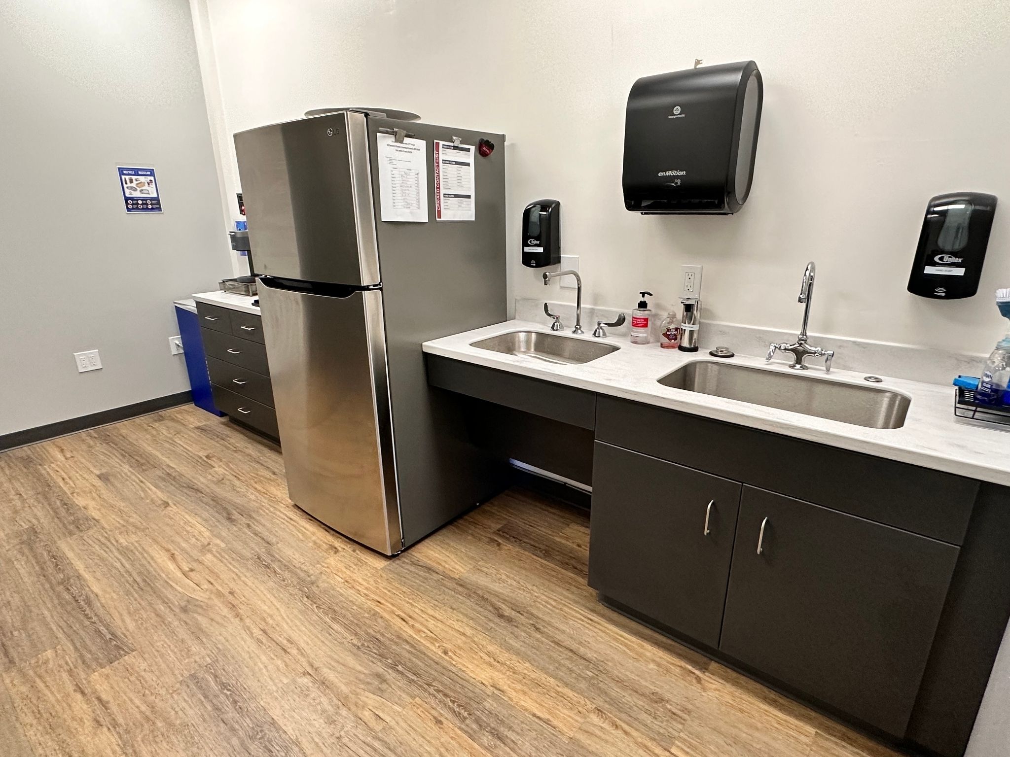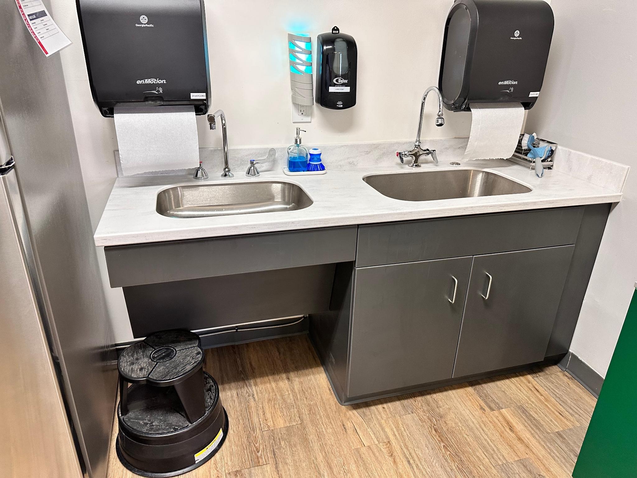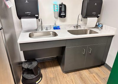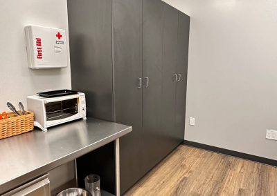 In effort to bring staff break rooms up to date, D&D embarked on a journey to design and install all the spaces as a turnkey project. This effort included space planning, designs for plumbing and fixtures, as well as the infrastructure for all the spaces. The project included plumbing, electrical upgrades, painting, flooring, cabinets, counters, appliances, and furniture. The result was state-of-the-art and ADA compliant spaces for the entire building.