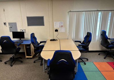 The Oakdale Heights Elementary School project was an “after school program” that was a combination eSports lab and classroom for after school activities. The eSports zone of the classroom uses cutting-edge gaming furniture from WB Manufacturing to host PC computer-based eSports games, and comfortable gaming chairs to provide younger students with the experience they could look forward to in higher grade levels. The space was designed by D&D Learning Spaces as the project was well received by students and faculty.