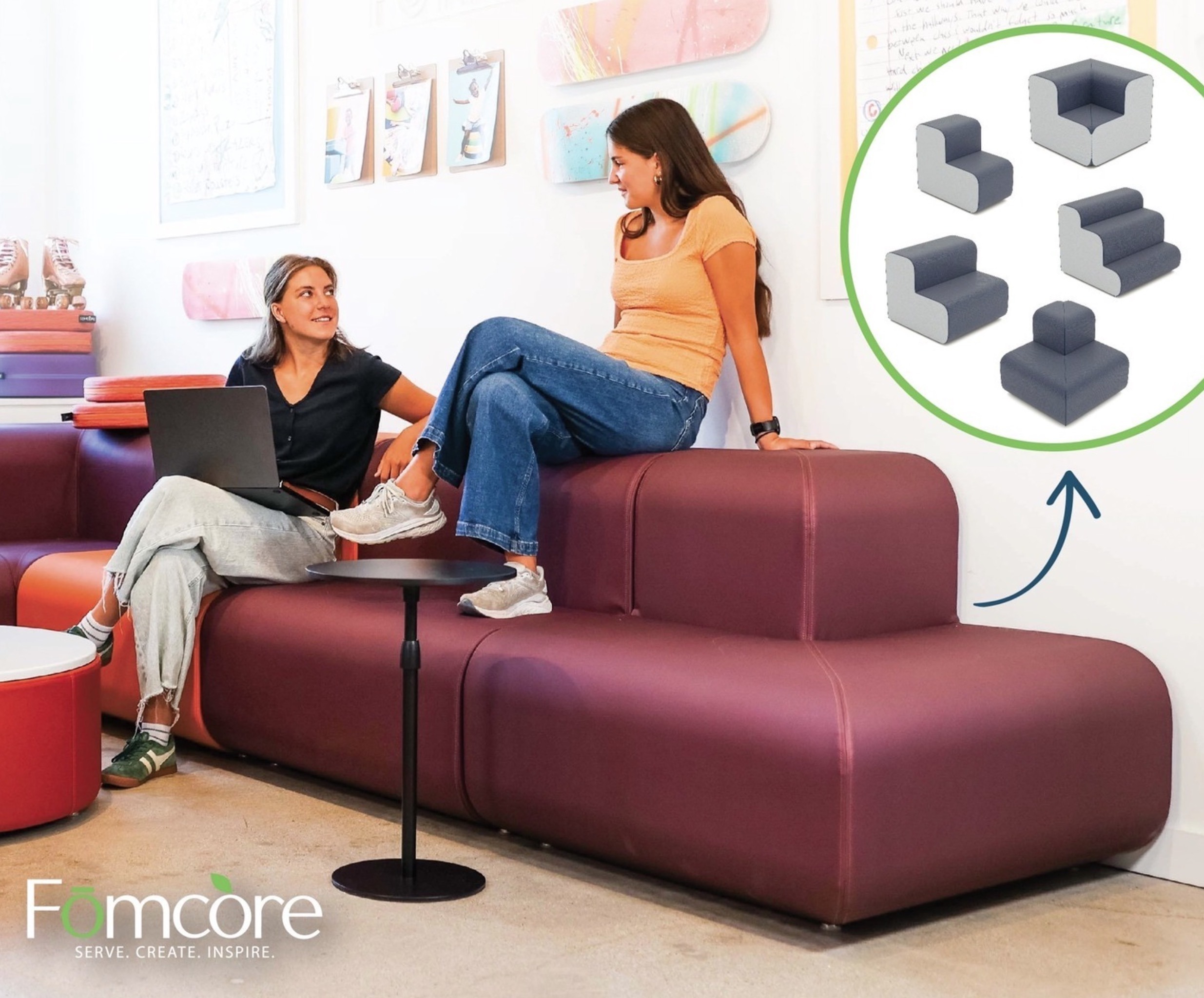 👉 Collaborative and Adaptable: Ideal for lobbies, common spaces, media centers, and the spaces in between.