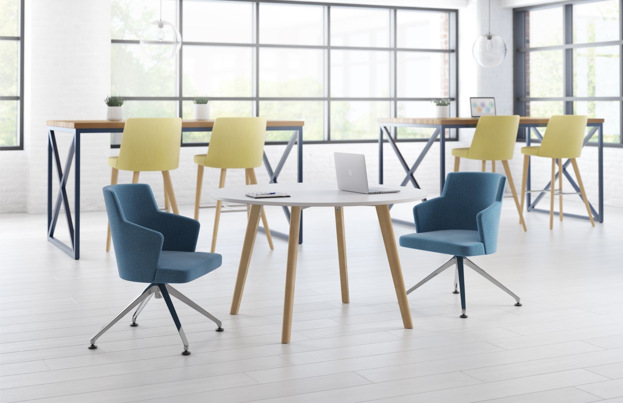 This family of seating includes side and conference chairs, lounge seating, and coordinating stools. Available in a variety of base options and with an optional clean out feature, Nate & Natty provides a welcoming aesthetic with functionality that fosters well-being and promotes engagement.