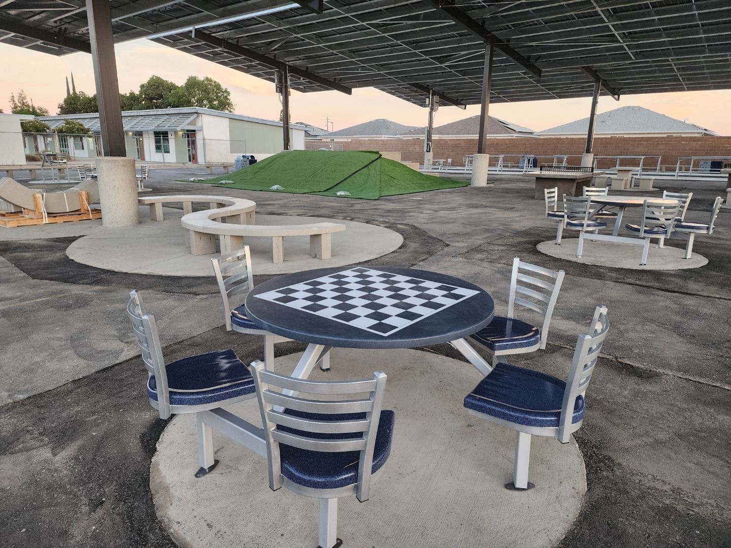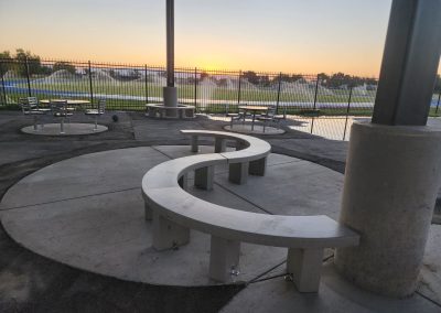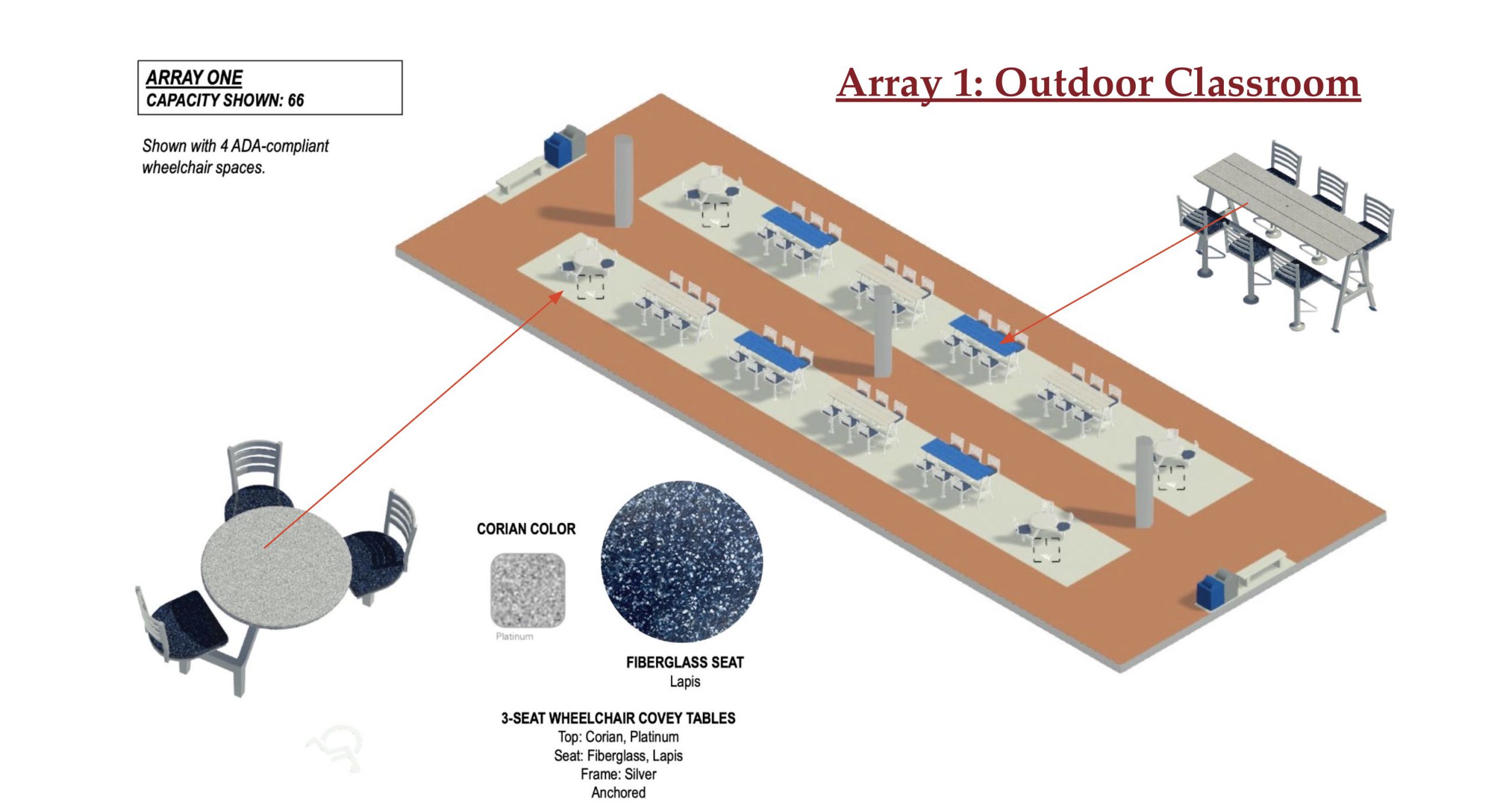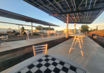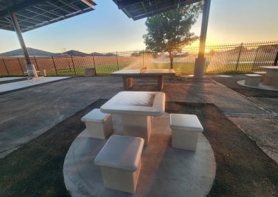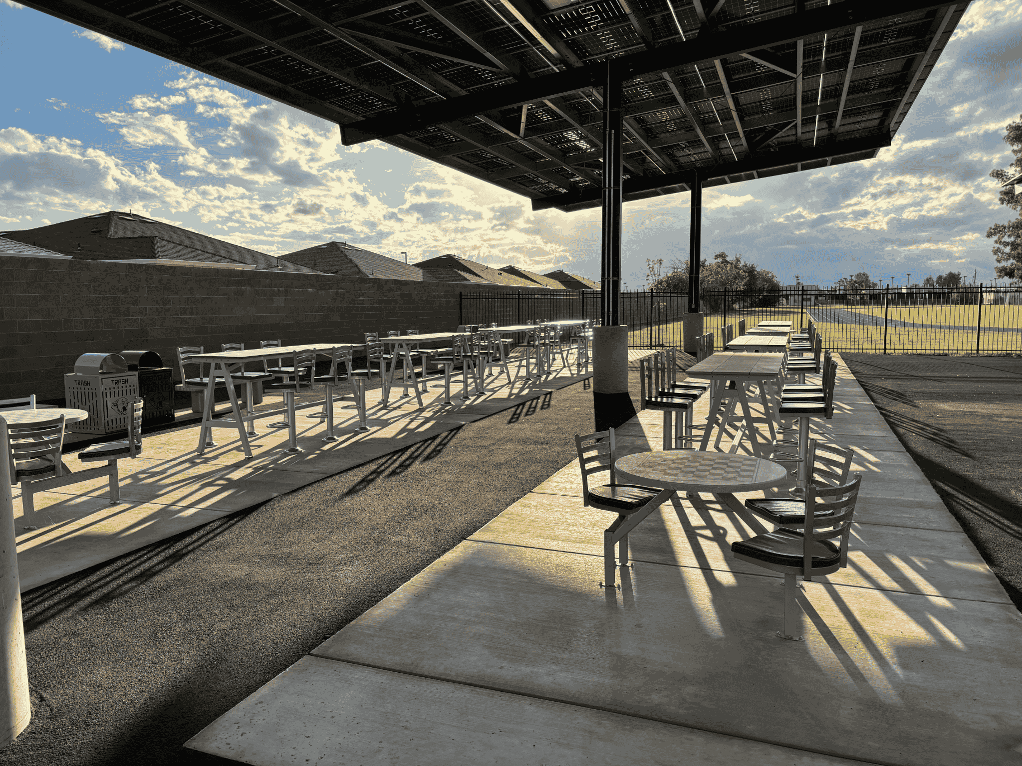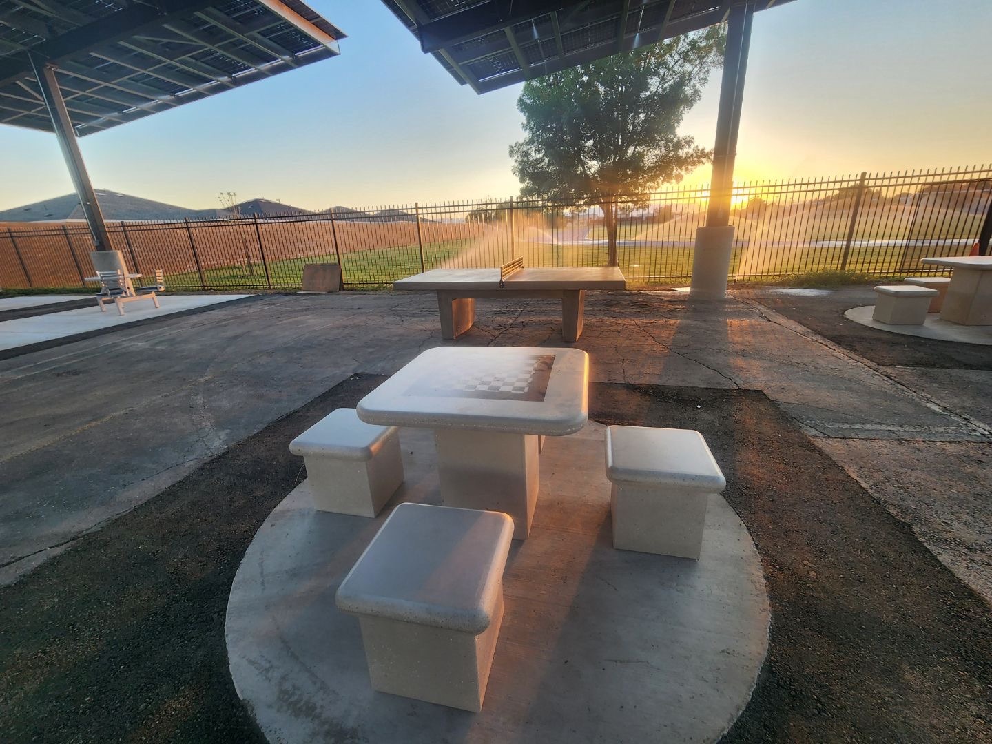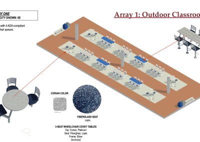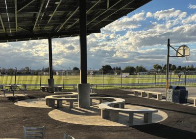 D&D Learning Spaces was tasked to transform this area into an outdoor learning commons under the three solar arrays. D&D’s design included a variety of durable outdoor furniture that was surface-mounted in concrete to accomindate multi-function activities. Teachers could use this area as an outdoor learning enivornment for at least 2-3 classrooms of students.