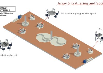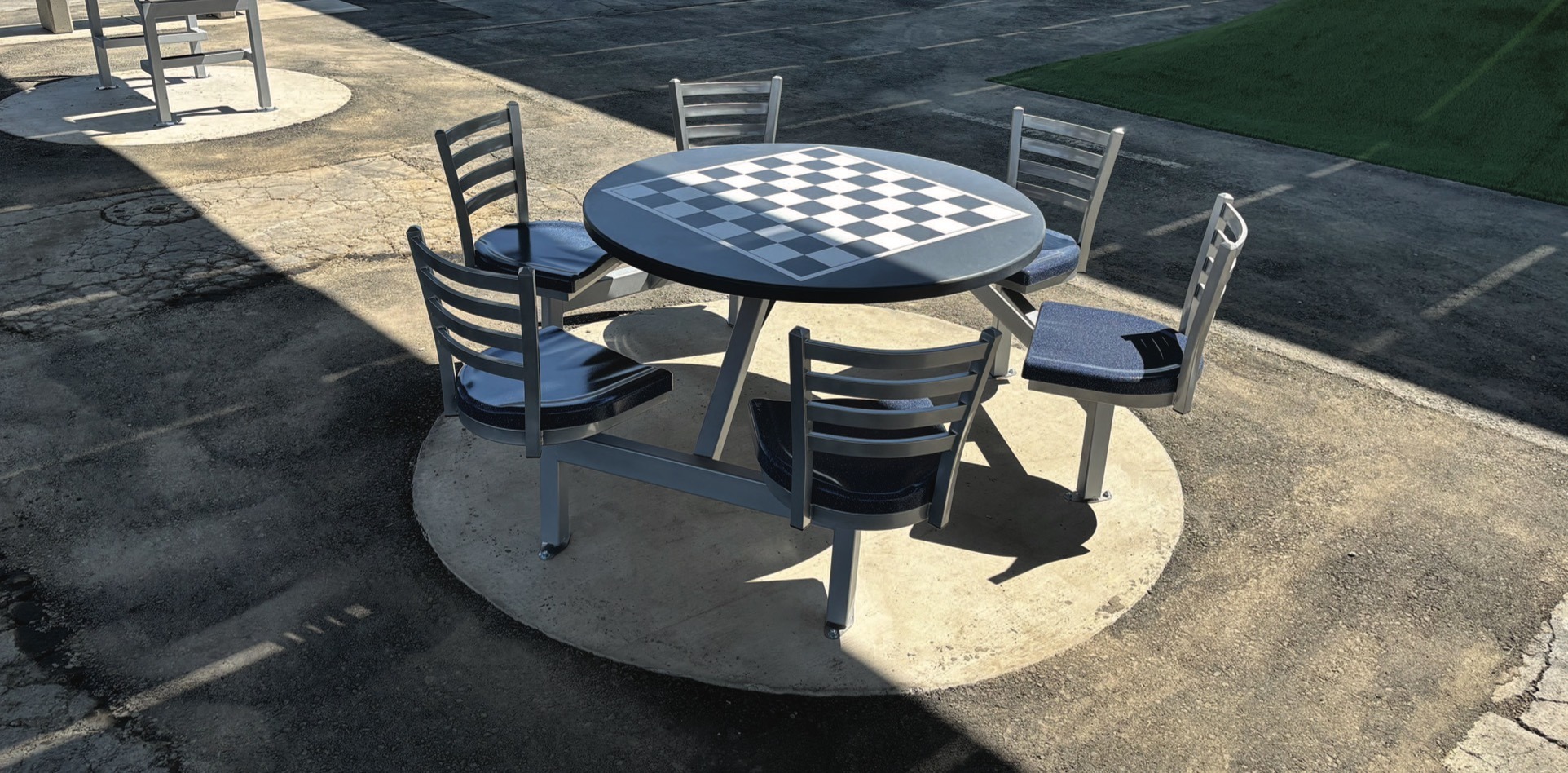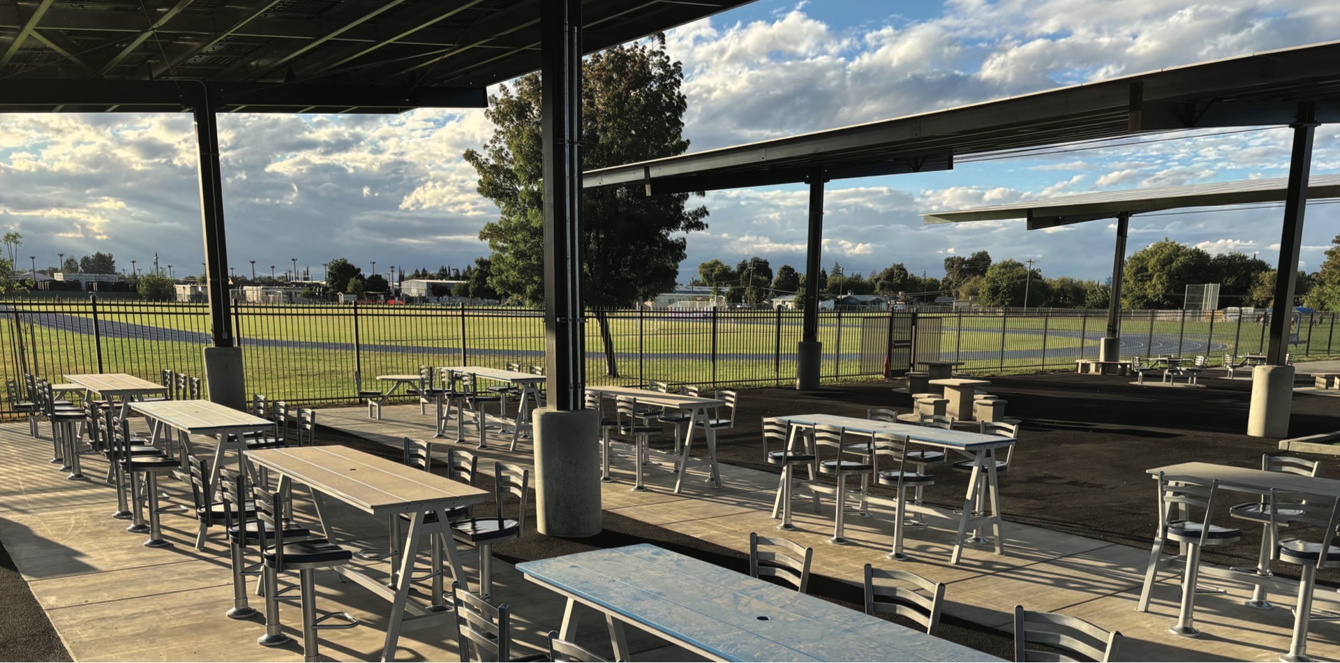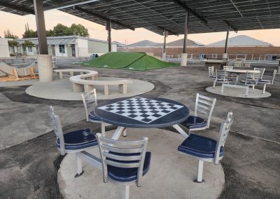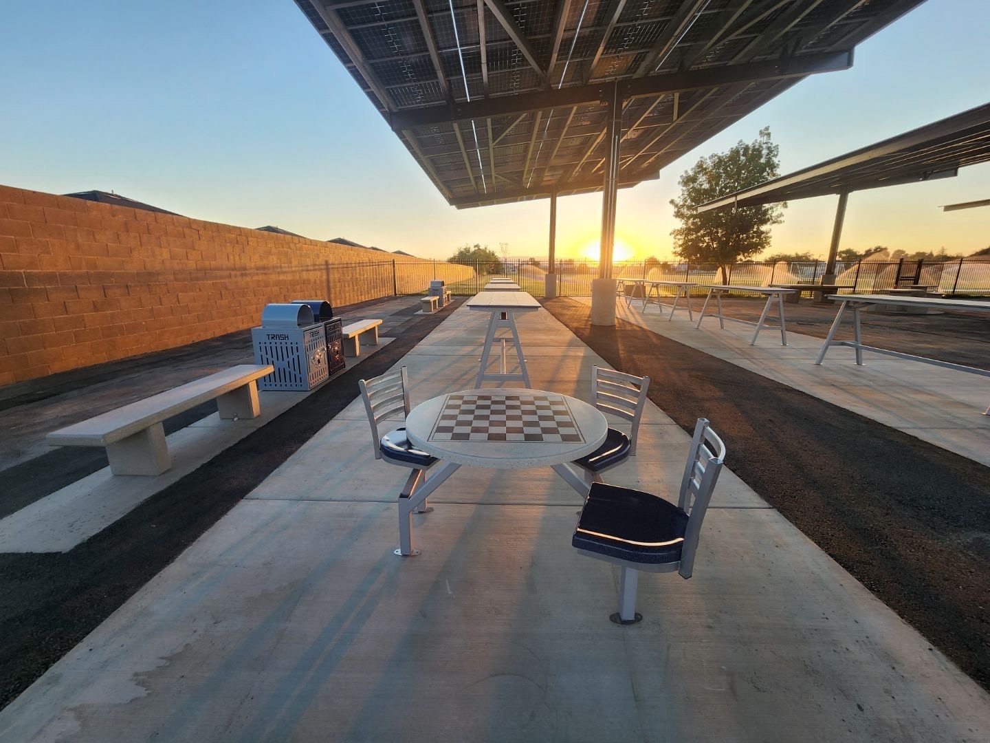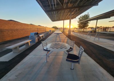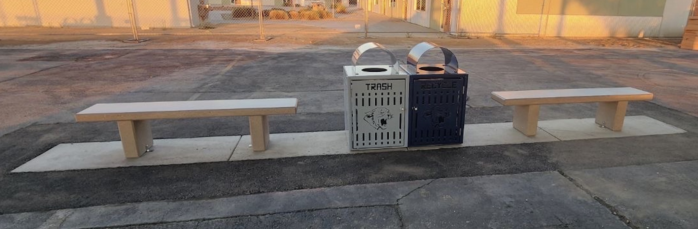 D&D Learning Spaces was tasked to transform this area into an outdoor learning commons under the three solar arrays. D&D’s design included a variety of durable outdoor furniture that was surface-mounted in concrete to accomindate multi-function activities. Teachers could use this area as an outdoor learning enivornment for at least 2-3 classrooms of students.