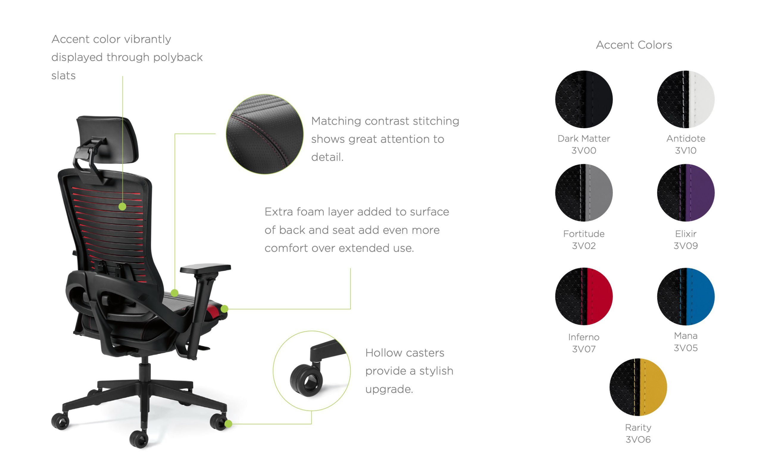 The OM5’s beauty is in the simplicity of its design. The chair adjusts to the user, instead of the other way around. The synchronized motion of the back and seat are balanced in perfect harmony. Designed to respond to user’s body weight without cumbersome tension knobs.