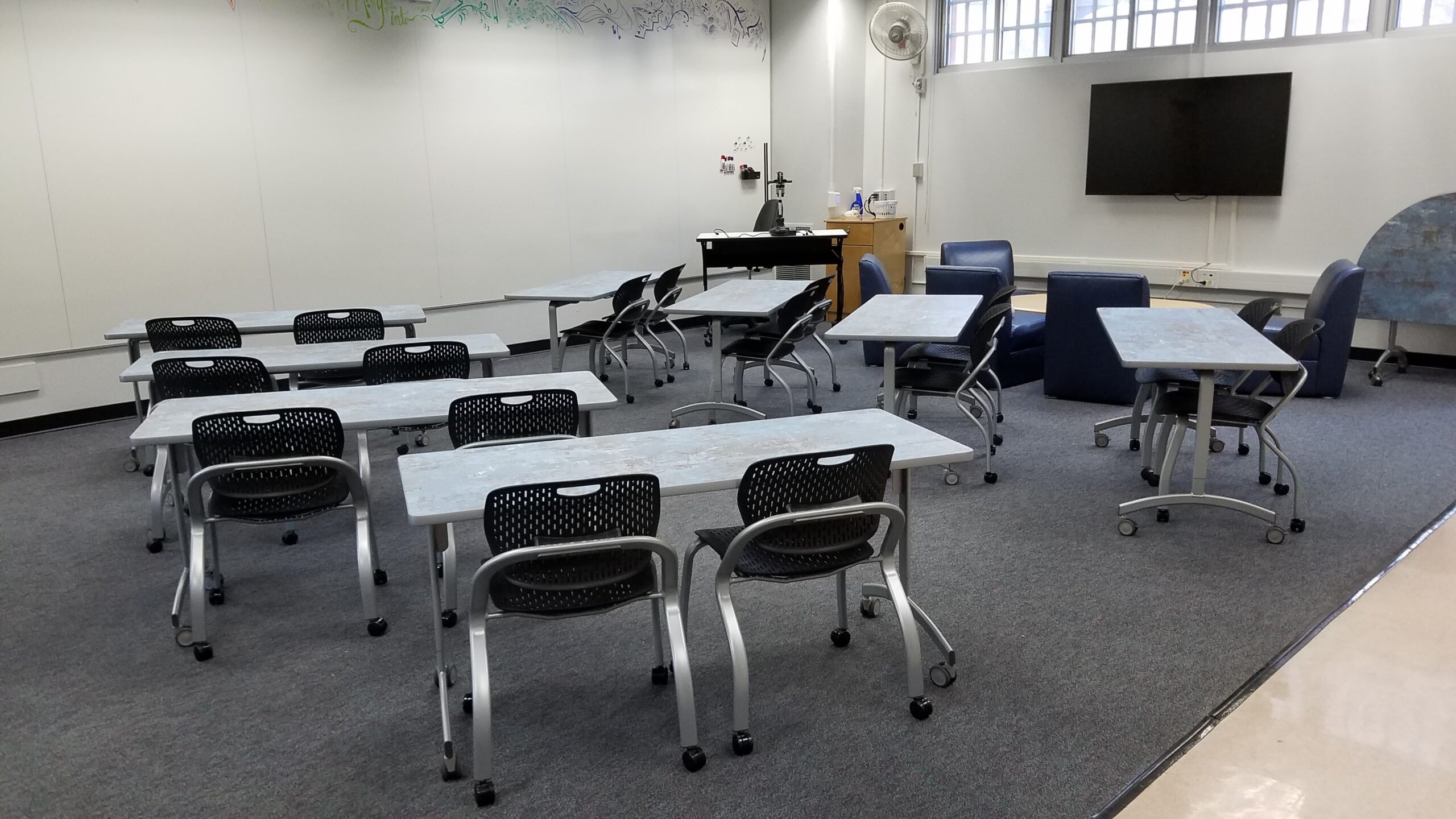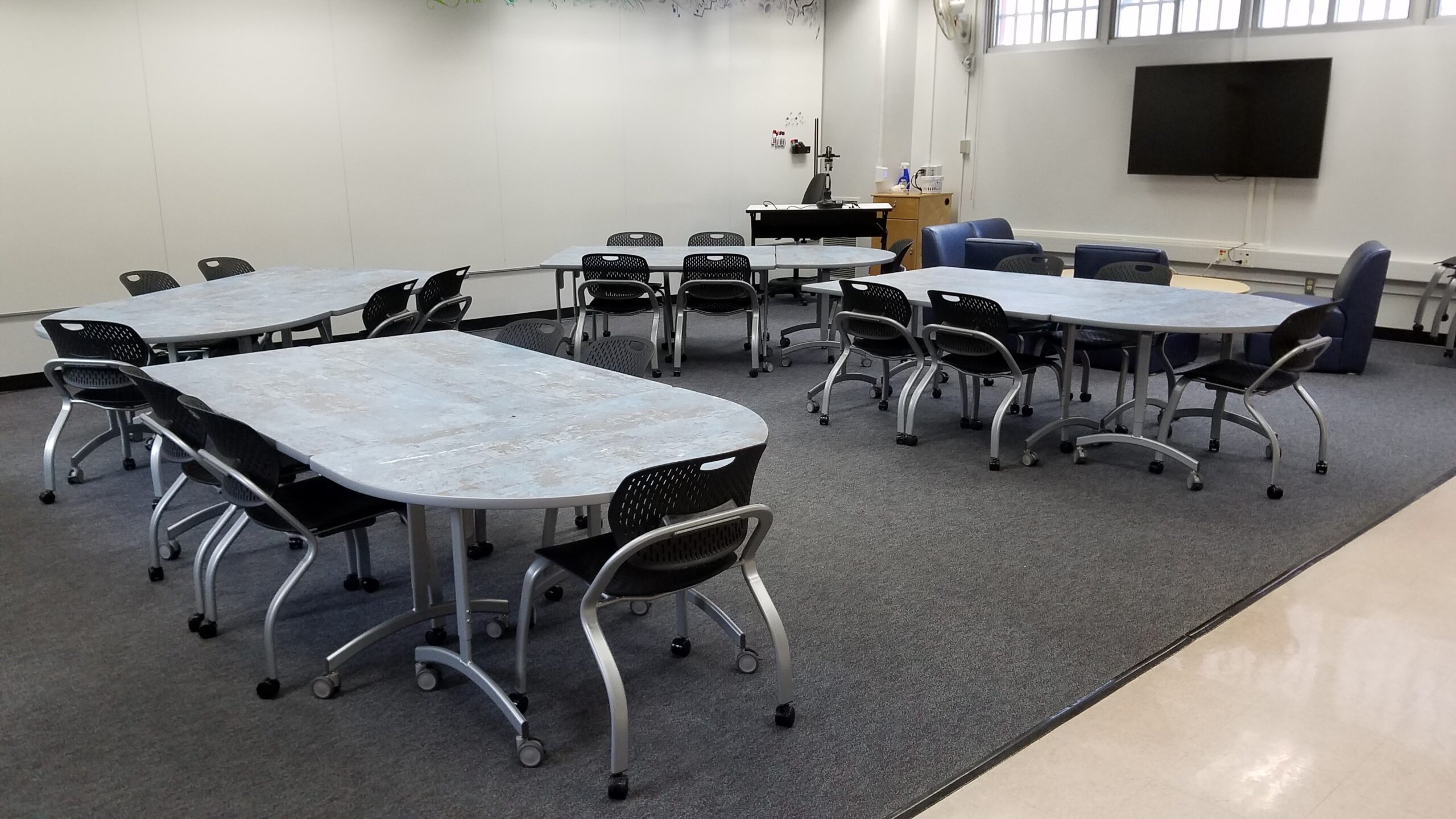 Washington Elementary STEAM transformed their staff lounge into a professional learning center while still keeping their staff lounge function on a daily basis. The new mobile and modular furniture allow for a variety of learning and community activities.